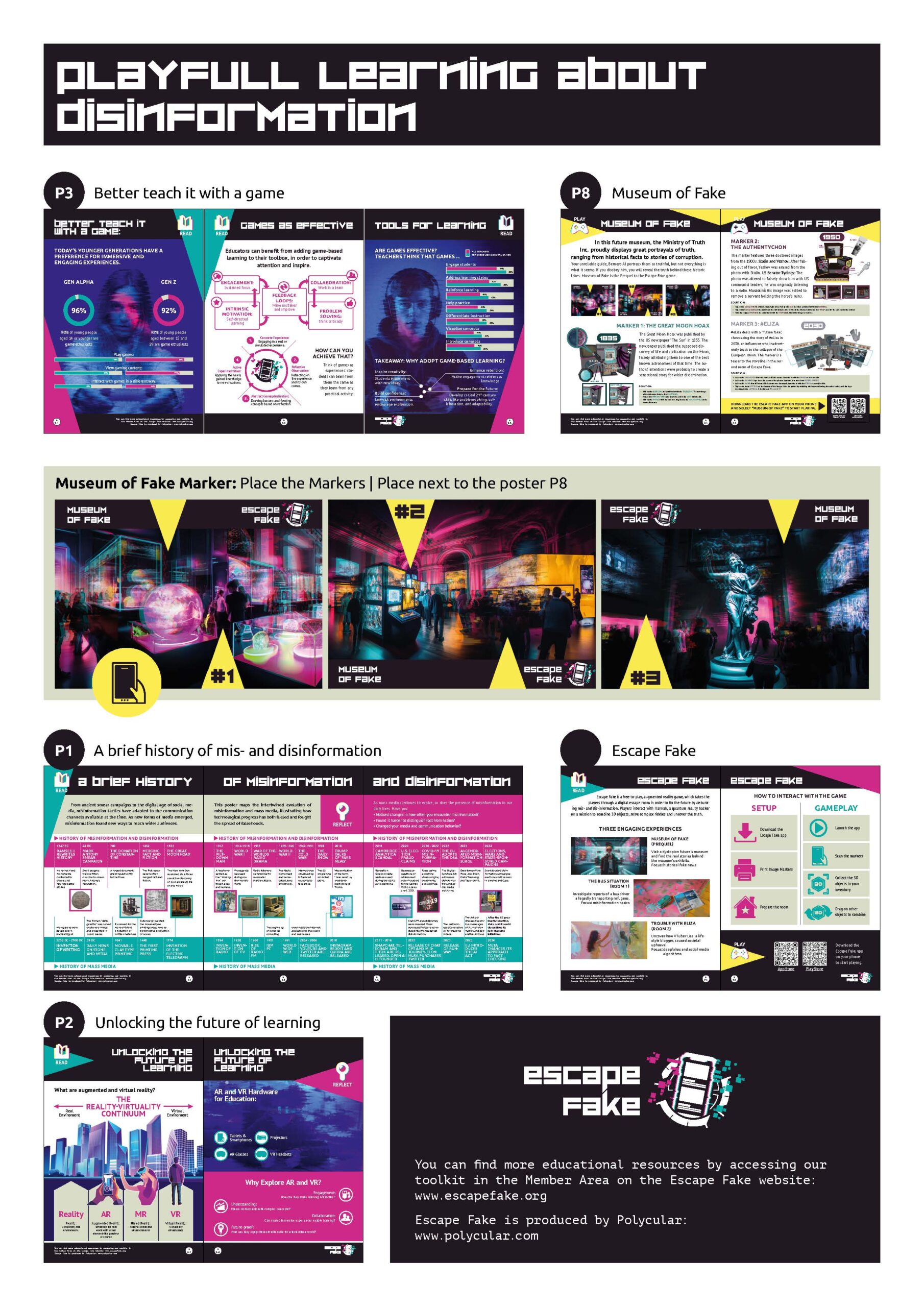 Notre exposition Musée du Fake est la préquelle du jeu Escape Fake et donne à un large public la possibilité d’explorer le monde de la désinformation. Parallèlement à l’exposition, nous proposons aux visiteurs d’autres activités attrayantes.
