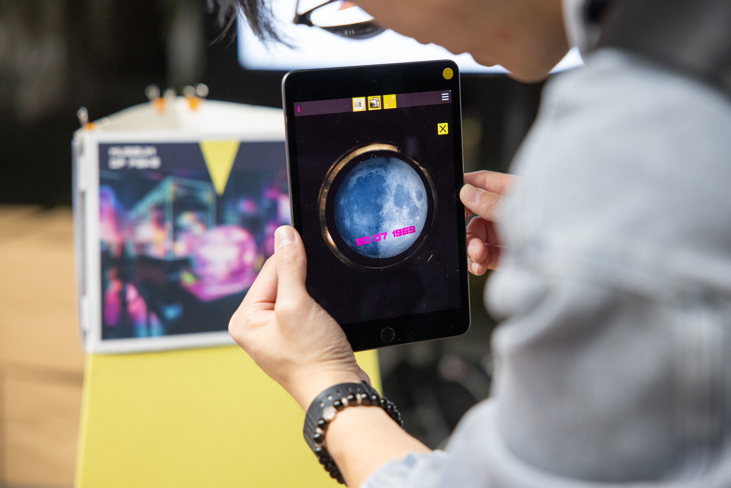 Installation interactive : les visiteurs prennent un selfie, qui est superposé en temps réel à un contenu préenregistré (nécessite du matériel/logiciel supplémentaire et une assistance technique).